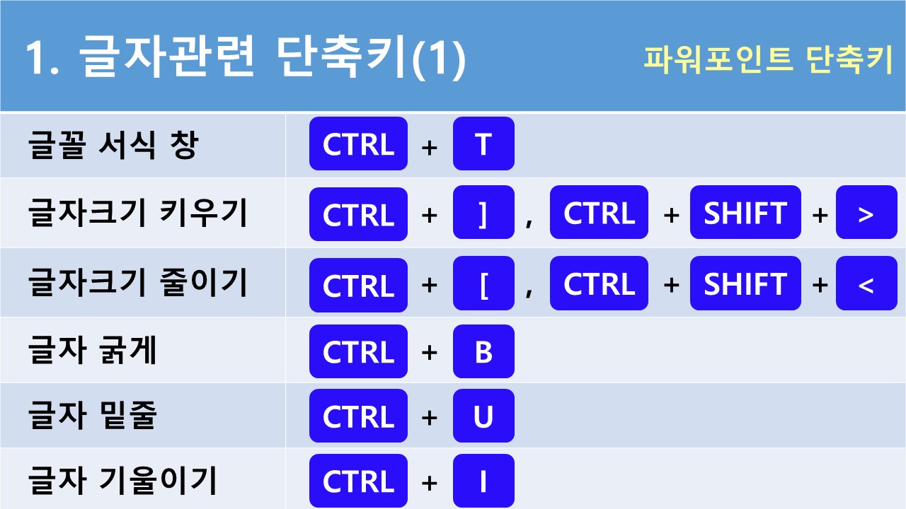 1. 파워포인트 단축키 - 글자 관련 단축키(1)